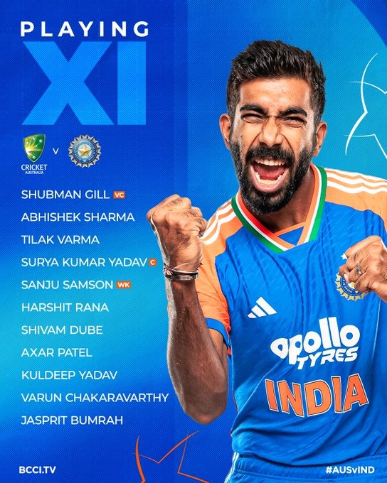 ଅଷ୍ଟ୍ରେଲିଆ ସହ ଭାରତୀୟ କ୍ରିକେଟ୍ ଦଳ ପ୍ରଥମ ଟ୍ବେଣ୍ଟି-୨୦ ମ୍ୟାଚରେ ଟସ ହାରି ବ୍ୟାଟିଂ କରିବ ।  ଦୁଇ ଦଳ ମଧ୍ୟରେ ଖେଳାଯିବାକୁ ଥିବା ପାଞ୍ଚ ମ୍ୟାଚ୍ ବିଶିଷ୍ଟ ଟ୍ବେଣ୍ଟି-୨୦ ଶୃଙ୍ଖଳାର ପ୍ରଥମ ମୁକାବିଲା  କାନ‌ବେରାର ମାନୁକା ଓଭାଲରେ ଖେଳାଯାଉଛି । ଭାରତୀୟ ଦଳରେ ଆଜି  ଅଭିଷେକ ଶର୍ମା, ଶୁଭମନ ଗିଲ୍, ସୂର୍ଯ୍ୟକୁମାର ଯାଦବ୍ (ଅଧିନାୟକ), ତିଲକ ବର୍ମା, ସଞ୍ଜୁ ସାମ୍‌ସନ୍ (ଉଇକେଟ୍‌କିପର୍), ଶିବମ ଦୁବେ, ଅକ୍ଷର ପଟେଲ୍, ହର୍ଷିତ ରାଣା, କୁଲଦୀପ ଯାଦବ୍, ବରୁଣ ଚକ୍ରବର୍ତ୍ତୀ, ଜସପ୍ରୀତ ବୁମରାହ୍ ଖେଳୁଛନ୍ତି ।