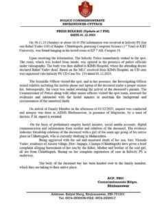 ପୁଣି ଆଉ ଜଣେ କିଟ୍ ଛାତ୍ର ଜୀବନ ହାରିଛନ୍ତି । ଛାତ୍ର ମୃତ୍ୟୁ ସମ୍ପର୍କରେ ସାଂଘାତିକ ଅଭିଯୋଗ ଆଣିଛନ୍ତି ଛାତ୍ରଙ୍କ ମା । ଭୁବନେଶ୍ୱରସ୍ଥିତ କିଟ୍ ବିଶ୍ୱବିଦ୍ୟାଳୟର ପ୍ରଥମ ବର୍ଷ କମ୍ପ୍ୟୁଟର ସାଇନ୍ସ ଛାତ୍ର ରାହୁଲ ଯାଦବଙ୍କ ମୃତ୍ୟୁ ଘଟଣାକୁ ନେଇ ରବିବାର ବିଳମ୍ବିତ ରାତିରୁ ସୃଷ୍ଟି ହୋଇଥିବା ବିବାଦ ଜାରି ରହିଛି। ମୃତ ଛାତ୍ରଙ୍କ ମା’ଙ୍କ ଅଭିଯୋଗ ଆଧାରରେ ଇନଫୋସିଟି ଥାନାରେ ଏକ ମାମଲା ରୁଜୁ କରାଯାଇଛି। ମୃତ ଛାତ୍ର ରାହୁଲ ଯାଦବ ଛତିଶଗଡ଼ର ରାୟପୁରର ବାସିନ୍ଦା ଥିଲେ ଏବଂ କିଟ୍ରେ ପ୍ରଥମ ବର୍ଷ କମ୍ପ୍ୟୁଟର ସାଇନ୍ସ ପାଠ ପଢ଼ୁଥିଲେ। ରାହୁଲଙ୍କ ମା’ ନିର୍ମଳା ଯାଦବ ଏହି ଘଟଣାକୁ ନେଇ ଇନଫୋସିଟି ଥାନାରେ ଲିଖିତ ଅଭିଯୋଗ ଦାୟର କରିଛନ୍ତି। ପୋଲିସ୍ ସୂତ୍ରରୁ ମିଳିଥିବା ସୂଚନା ଅନୁଯାୟୀ, ଘଟଣା ସମ୍ପର୍କରେ ଖବର ପାଇ ରାହୁଲଙ୍କ ପରିବାର ଲୋକେ ସୋମବାର ଅପରାହ୍ନରେ ଭୁବନେଶ୍ୱରରେ ପହଞ୍ଚିଥିଲେ। ଏମ୍ସ ଭୁବନେଶ୍ୱର (AIIMS Bhubaneswar) ରେ ମାଜିଷ୍ଟ୍ରେଟ୍ଙ୍କ ଉପସ୍ଥିତିରେ ରାହୁଲଙ୍କ ଶବ ବ୍ୟବଚ୍ଛେଦ କରାଯାଇଛି। ବର୍ତ୍ତମାନ ତଦନ୍ତକାରୀ ଅଧିକାରୀମାନେ ମୃତ୍ୟୁର ପ୍ରକୃତ କାରଣ ଜାଣିବା ପାଇଁ ଶବ ବ୍ୟବଚ୍ଛେଦ ରିପୋର୍ଟକୁ ଅପେକ୍ଷା କରିଛନ୍ତି। ମା’ଙ୍କ ଅଭିଯୋଗର ଗୁରୁତ୍ୱକୁ ଦୃଷ୍ଟିରେ ରଖି ଇନଫୋସିଟି ପୋଲିସ୍ ଘଟଣାର ବିଭିନ୍ନ ଦିଗକୁ ନେଇ ତଦନ୍ତ ଜାରି ରଖିଛି। ତେବେ ଶବ ବ୍ୟବଚ୍ଛେଦ ରିପୋର୍ଟ ଆସିବା ପରେ ଘଟଣାକୁ ନେଇ ଅଧିକ ତଥ୍ୟ ସାମ୍ନାକୁ ଆସିବ ବୋଲି ଆଶା କରାଯାଉଛି ।