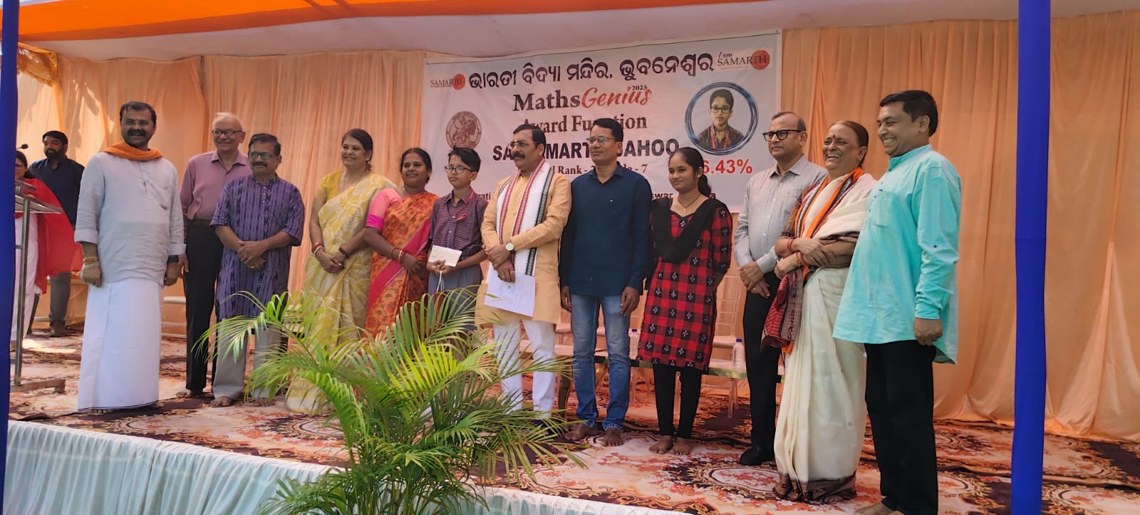 ସପ୍ତମ ଶ୍ରେଣୀ ଛାତ୍ର ସାଇ ସମର୍ଥ ସାହୁ ପାଇଛନ୍ତି ବଡ଼ ସଫଳତା । ମ୍ୟାଥ୍ସ ଜିନିୟସ୍ 2025, ରାଷ୍ଟ୍ରୀୟ ସ୍ତରରେ ହୋଇଥିବା ପ୍ରତିଯୋଗିତାରେ ଦ୍ୱିତୀୟ ସ୍ଥାନ ହାସଲ କରିଛନ୍ତି । ଏହି ସଫଳତା ହେତୁ,ସମର୍ଥ ଟ୍ରଷ୍ଟ ର 19ତମ ପ୍ରତିଷ୍ଠା ଦିବସରେ ତାଙ୍କୁ ସମ୍ମାନିତ କରାଯାଇଛି। ମିସାଇଲ୍ ମ୍ୟାନ୍ ଡ. ଏ.ପି.ଜେ. ଅବଦୁଲ କଲାମଜୀଙ୍କ ଜନ୍ମଦିନ ପାଳନ ଅବସରରେ ସମର୍ଥ ଟ୍ରଷ୍ଟ (Samarth Trust) ଏହାର 19ତମ ପ୍ରତିଷ୍ଠା ଦିବସ ପାଳନ କରିଛି । ଏହି ବିଶେଷ ଦିବସ ଅବସରରେ, ସମର୍ଥ ଟ୍ରଷ୍ଟ, ଭୁବନେଶ୍ୱରସ୍ଥିତ ଭାରତୀ ବିଦ୍ୟା ମନ୍ଦିରରେ ଏକ ଭବ୍ୟ ସମ୍ମାନ ସମାରୋହ ଆୟୋଜନ କରିଥିଲା । ସ୍କୁଲ୍-ସ୍ତରୀୟ ଗଣିତ ପ୍ରତିଯୋଗିତା, ମ୍ୟାଥ୍ସ ଜିନିୟସ୍ 2025 ରେ ଅସାଧାରଣ ପ୍ରଦର୍ଶନ କରିଥିବା 7ମ ଶ୍ରେଣୀର ଛାତ୍ର ସାଇ ସମର୍ଥ ସାହୁଙ୍କୁ ସମ୍ମାନିତ କରାଯାଇଥିଲା । ସାଇ ସମର୍ଥ ସାହୁ ସାରା ଦେଶରେ ନିଜ ଶ୍ରେଣୀସ୍ତରରେ ଦ୍ୱିତୀୟ ସ୍ଥାନ (Second National Rank) ହାସଲ କରି ଓଡ଼ିଶାର ଗୌରବ ବୃଦ୍ଧି କରି ଅନ୍ୟମାନଙ୍କ ପାଇଁ ଉଦାହରଣ ହୋଇଛନ୍ତି ।